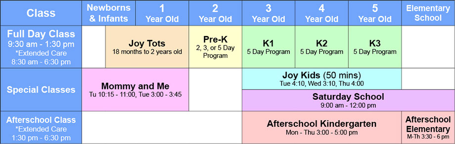 The Afterschool Kindergarten is designed for students who are not enrolled in our daytime kindergarten classes. Joy to the World's emphasis on English immersion and staff of native speakers makes this program unique and valuable for students.